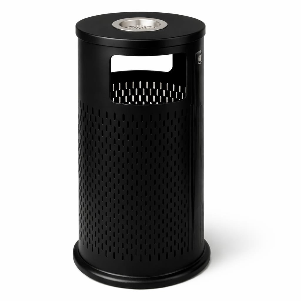 פח מעוצב בעל פתח צידי להשלכת פסולת ומאפרה.